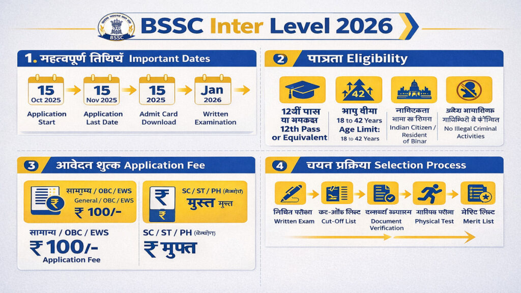 Very Important: Candidates must double-check all dates on the official BSSC website (bssc.bihar.gov.in) for any last-minute changes.